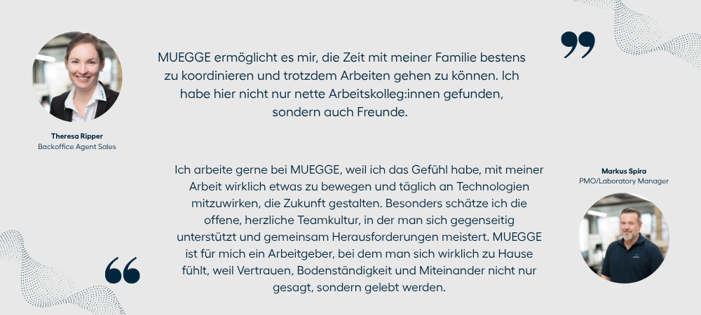Bei MUEGGE glauben wir, dass Erfolg auf Innovation, Teamgeist und gegenseitiger Wertschätzung basiert. Deshalb schaffen wir ein Arbeitsumfeld, in dem sich unsere Mitarbeiter:innen entfalten, weiterentwickeln und wohlfühlen können. Unsere Benefits sind Ausdruck dieser Haltung: sie bieten Sicherheit, Flexibilität und Freiraum, um Beruf und Privatleben in Einklang zu bringen.